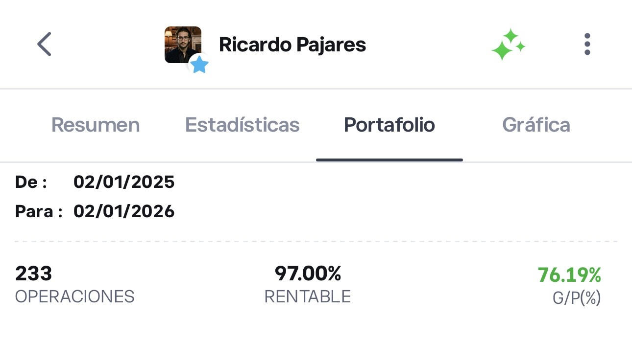 Soy Inversor Profesional, en el año 2025 obtuve una rentabilidad con mi propio patrimonio auditada por eToro del +76,19% superando en rentabilidad a los mejores gestores de España.