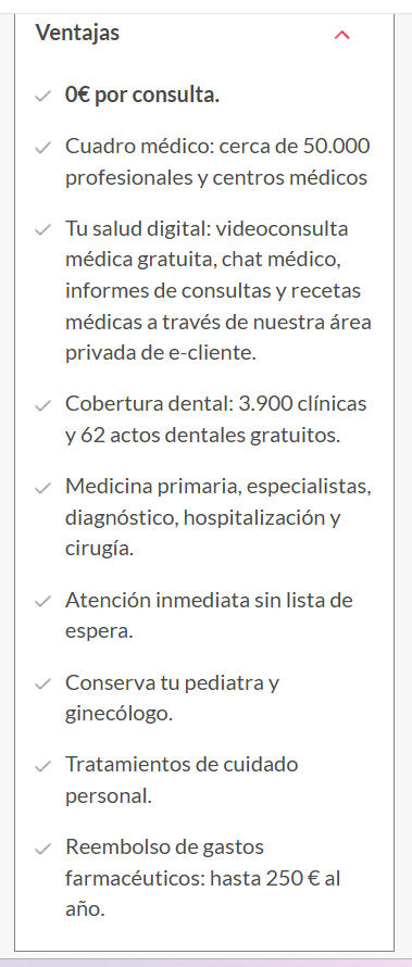 Si optas por la modalidad de copago 5, pagarás 5 euros por cada visita que realices a tu especialista médico.- Advance:
