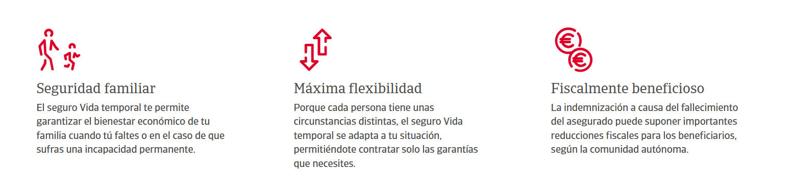 Fallecimiento por accidente de circulación: incluyendo esta cobertura, si el fallecimiento es a consecuencia de un accidente de circulación, el capital recibido por los beneficiarios será el triple del asegurado. Vida temporal también cuenta con un capital adicional para los hijos, si en dicho accidente de circulación fallecen ambos padres.- Invalidez absoluta permanente: