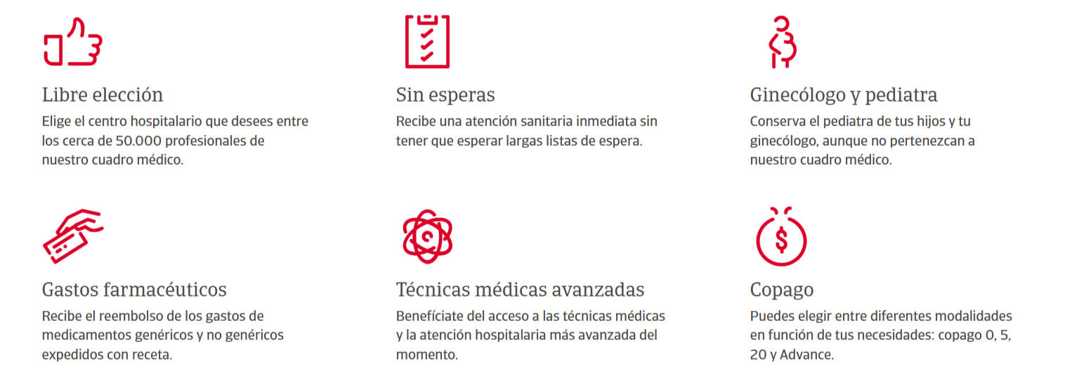 Con cerca de 50.000 profesionales de primer orden, abarca todas las especialidades médico-quirúrgicas y contempla también ingresos hospitalarios: