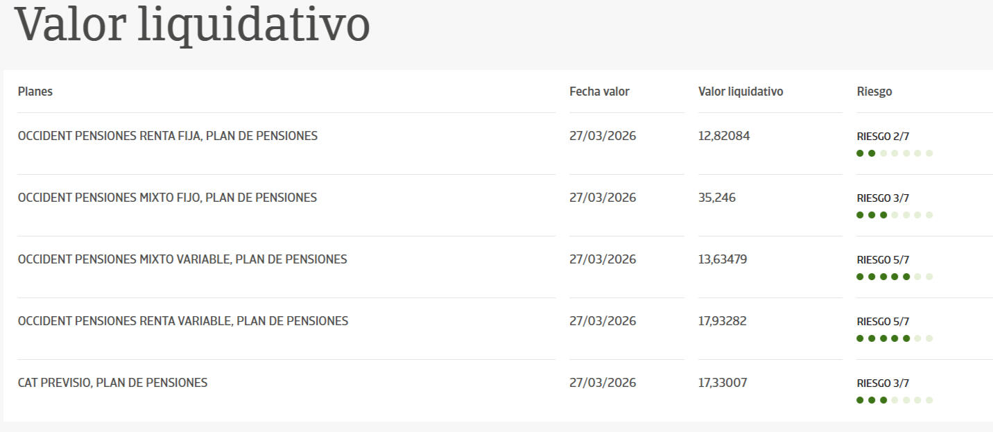 Opciones de inversión:- Occident Pensiones Renta Fija: